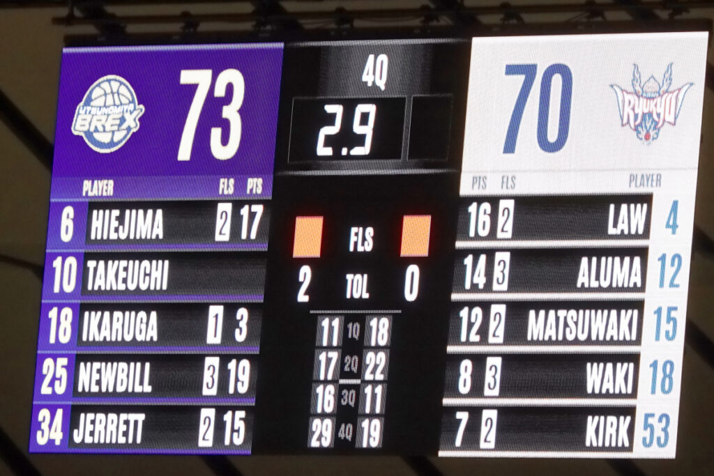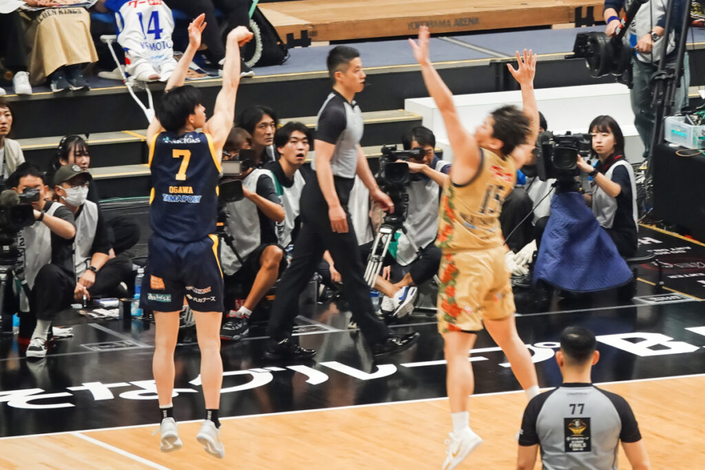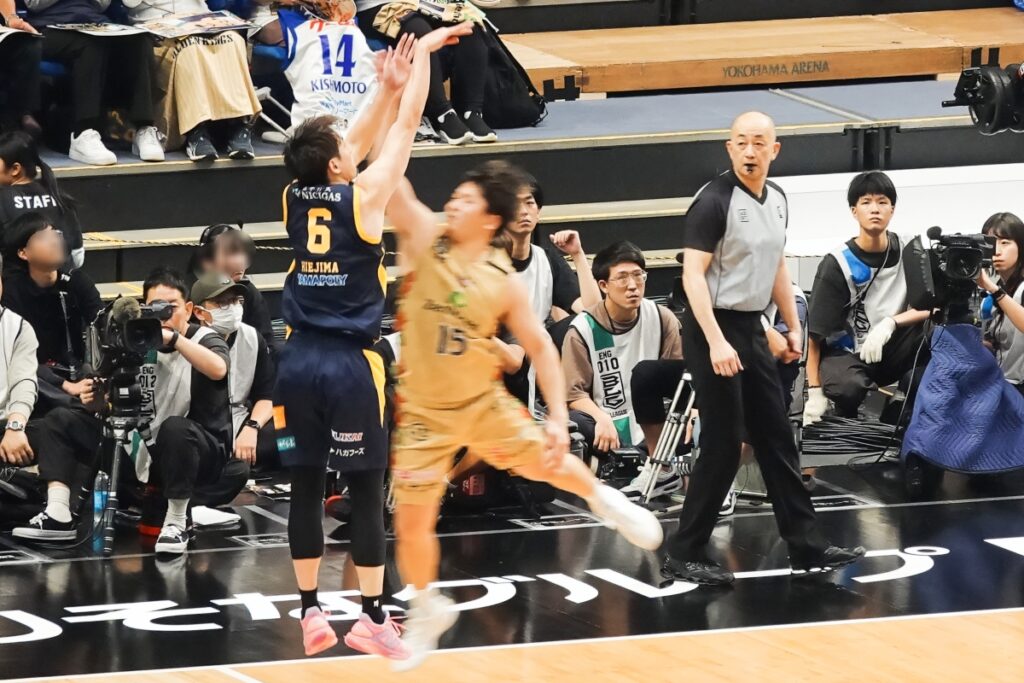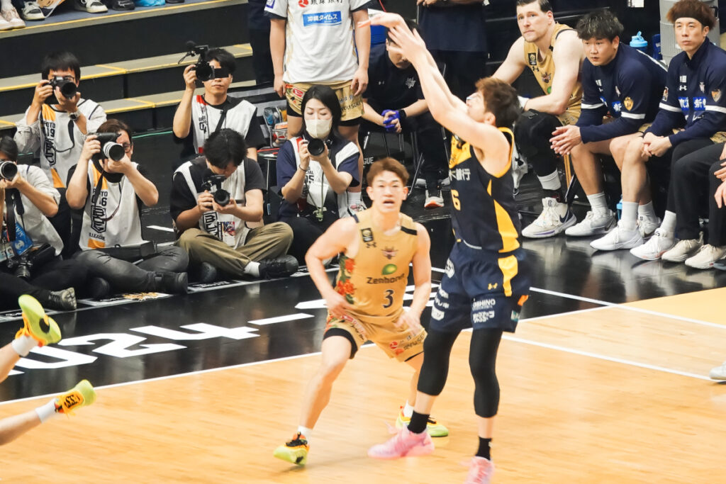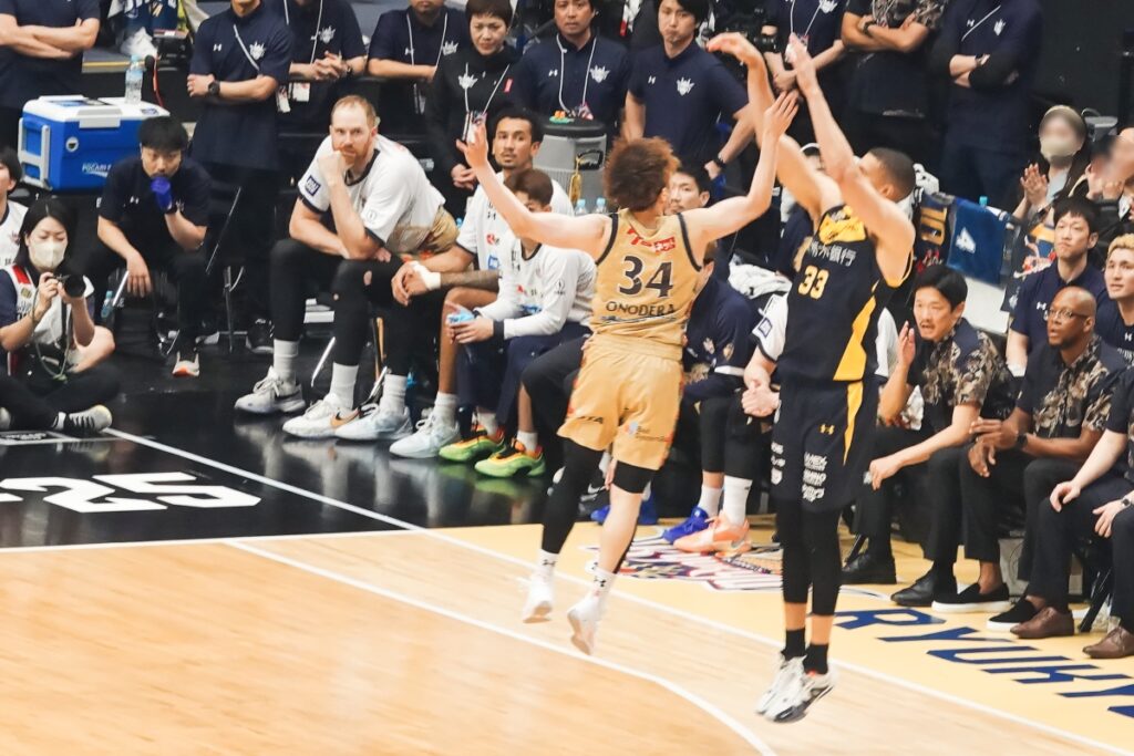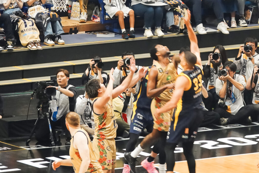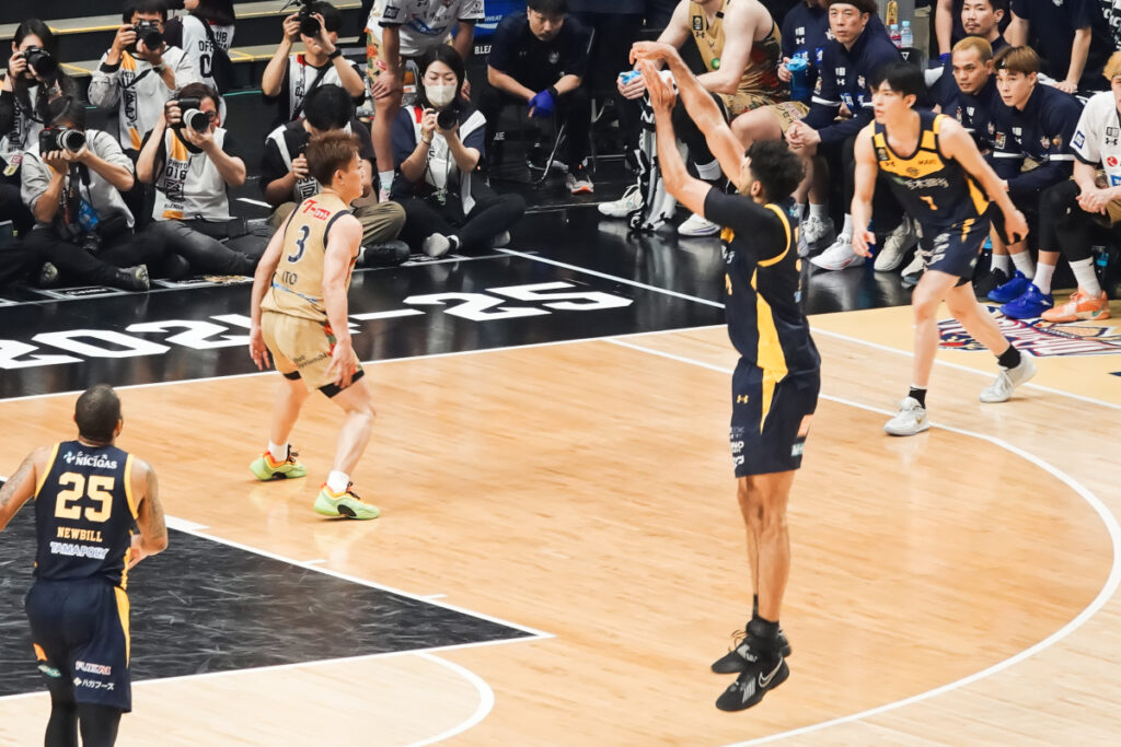 残り約1分ニュービルの3ポイントで逆転し、その後再逆転されるものの残り約30秒比江島の3ポイントが決勝点になりました。