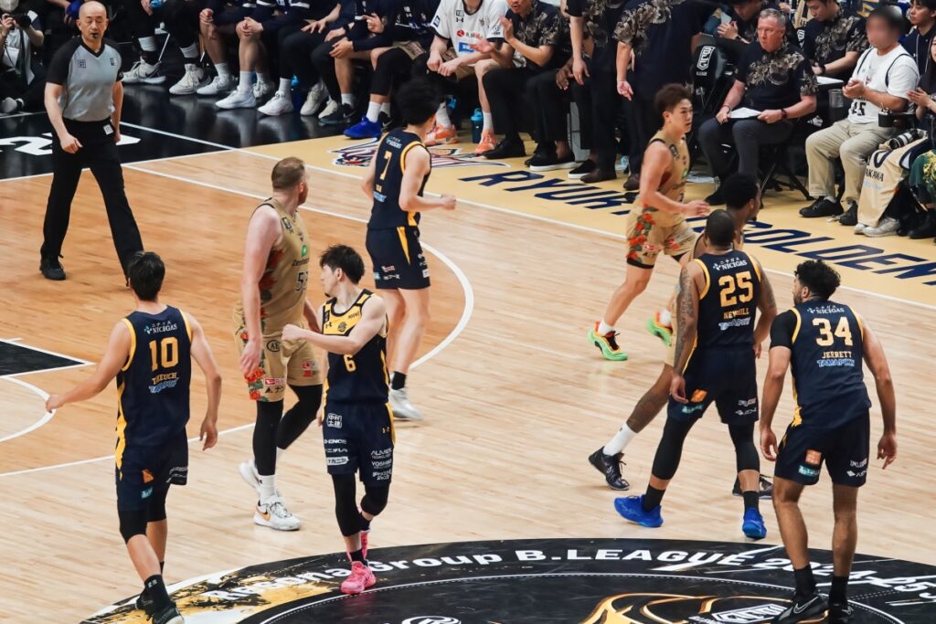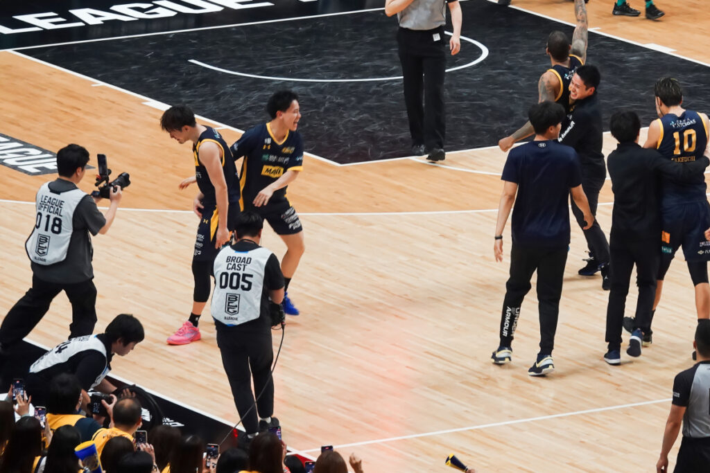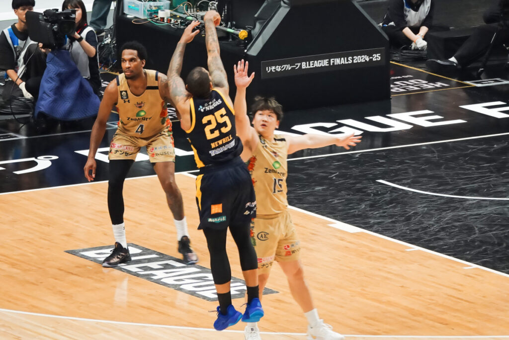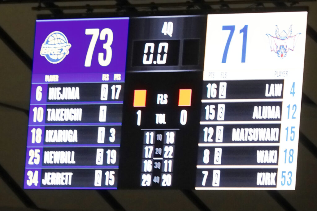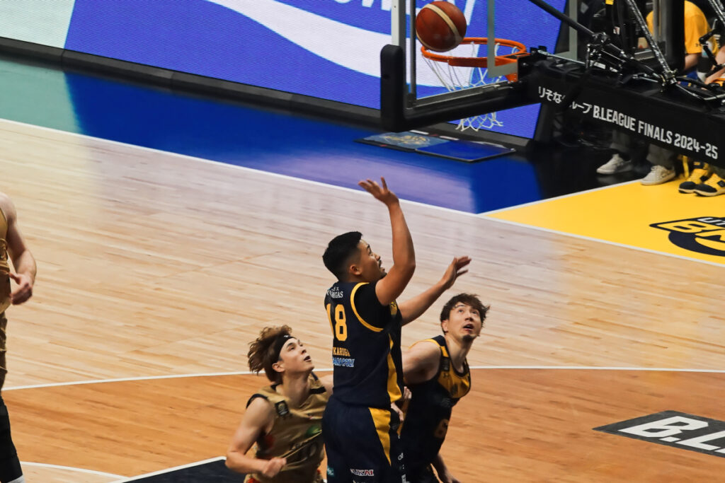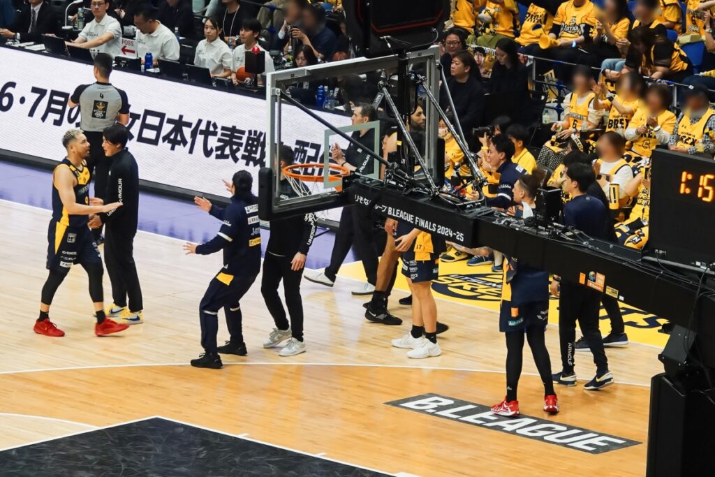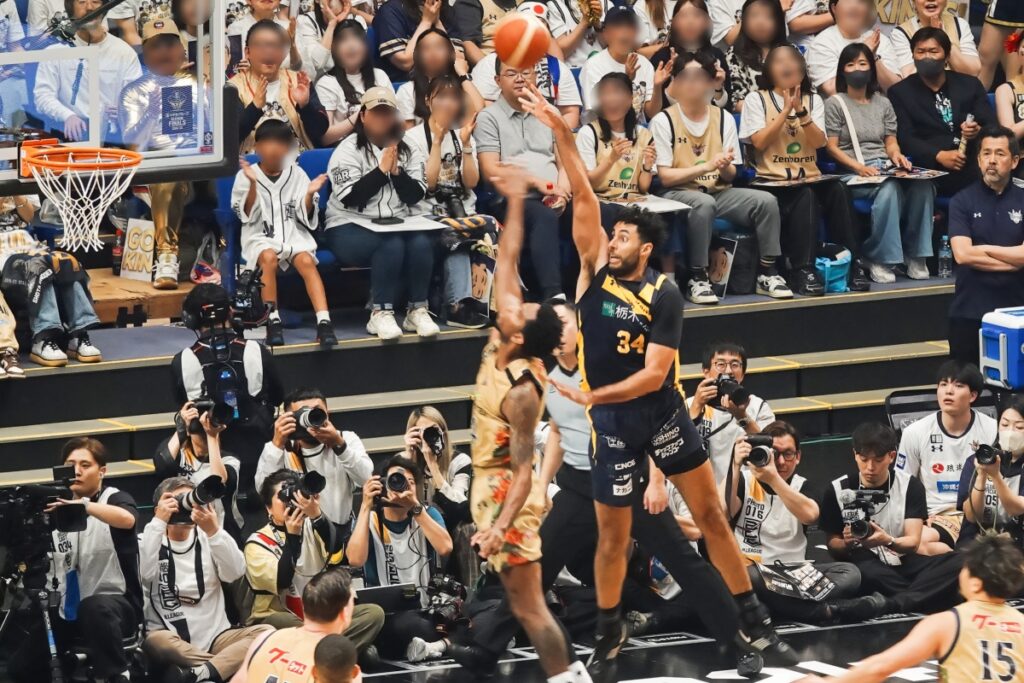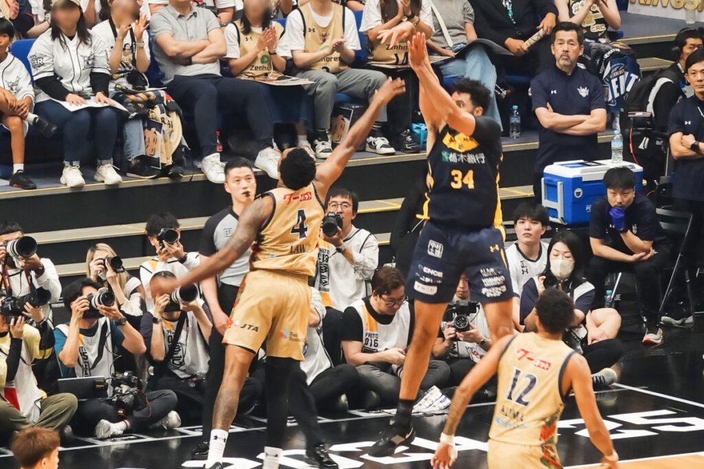 残り約1分ニュービルの3ポイントで逆転し、その後再逆転されるものの残り約30秒比江島の3ポイントが決勝点になりました。
