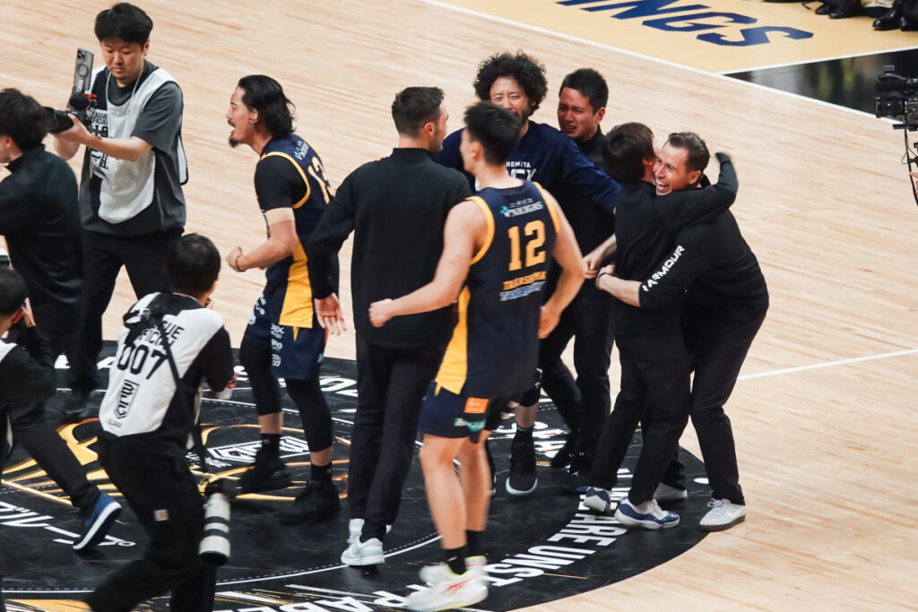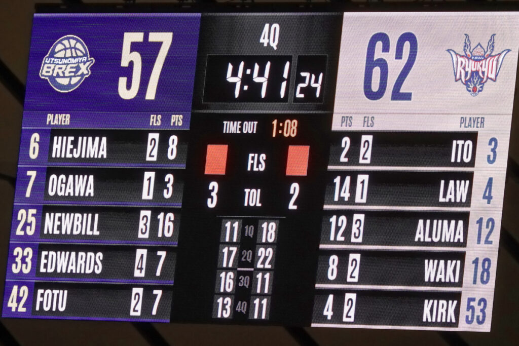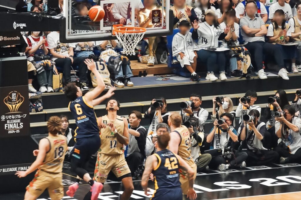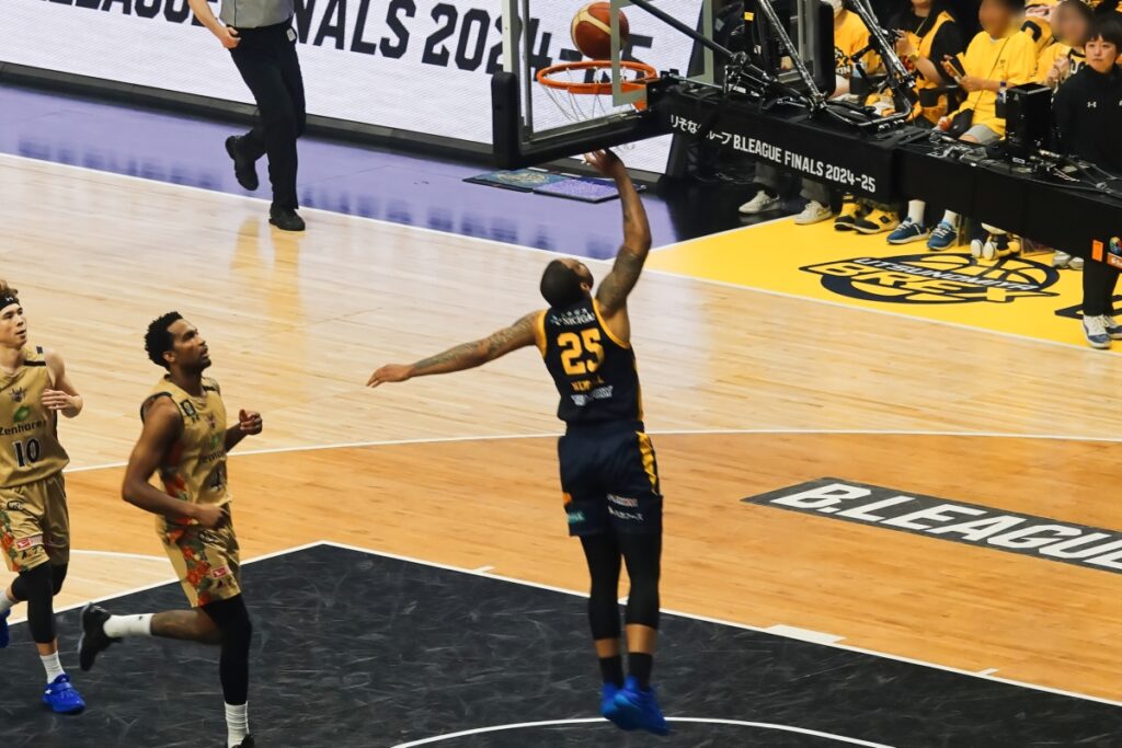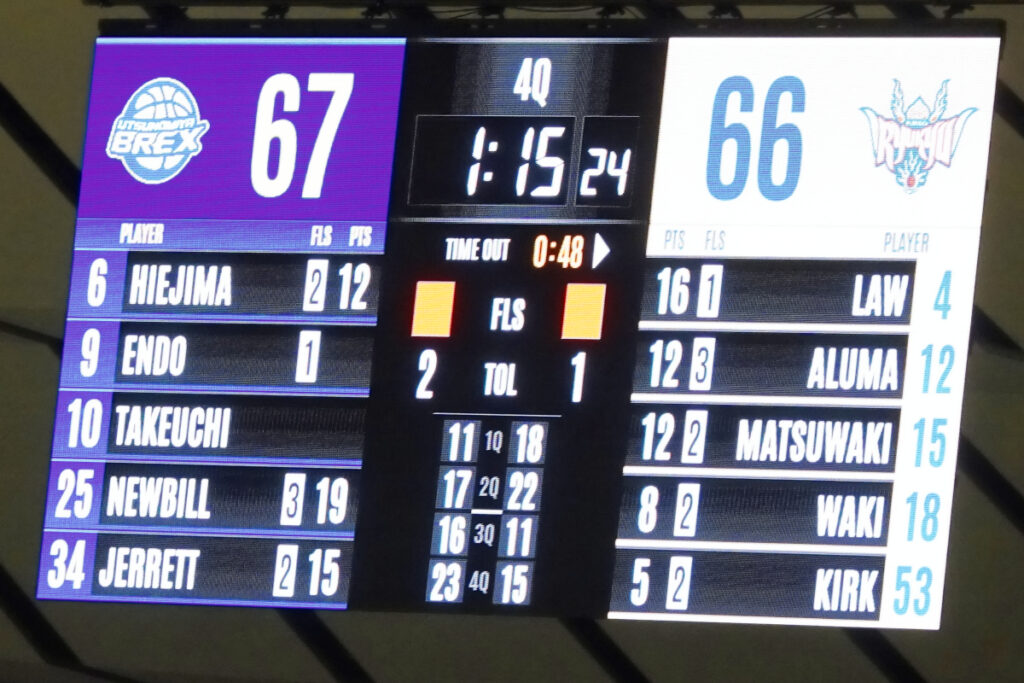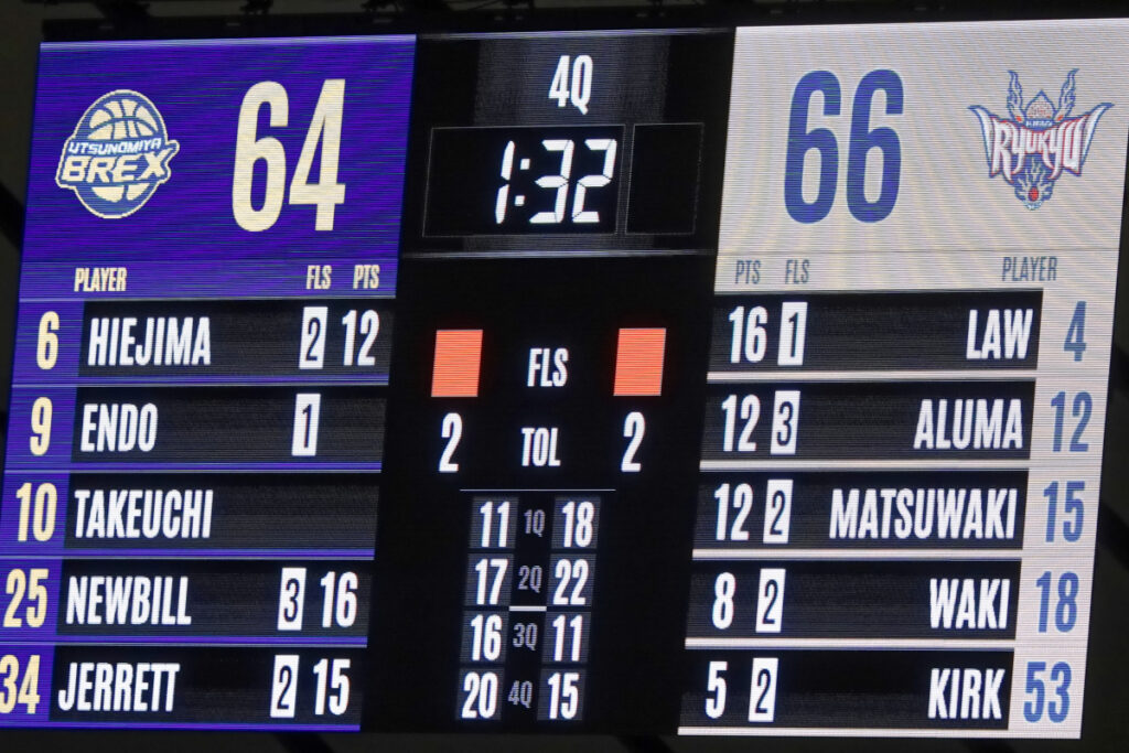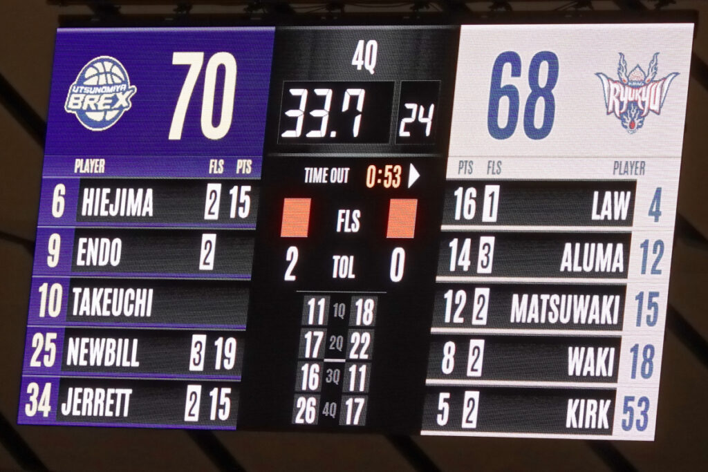 残り約1分ニュービルの3ポイントで逆転し、その後再逆転されるものの残り約30秒比江島の3ポイントが決勝点になりました。