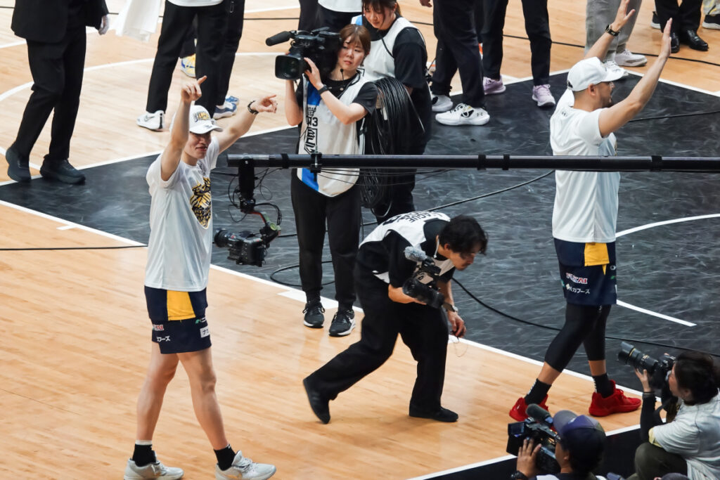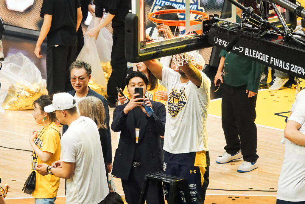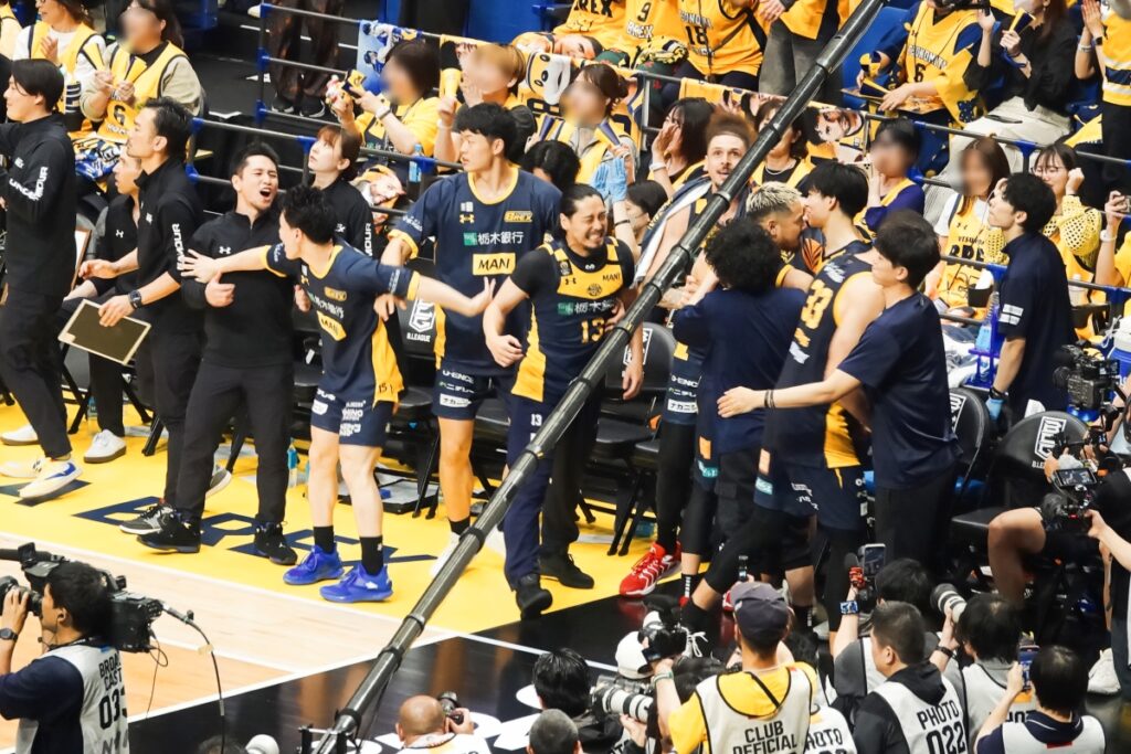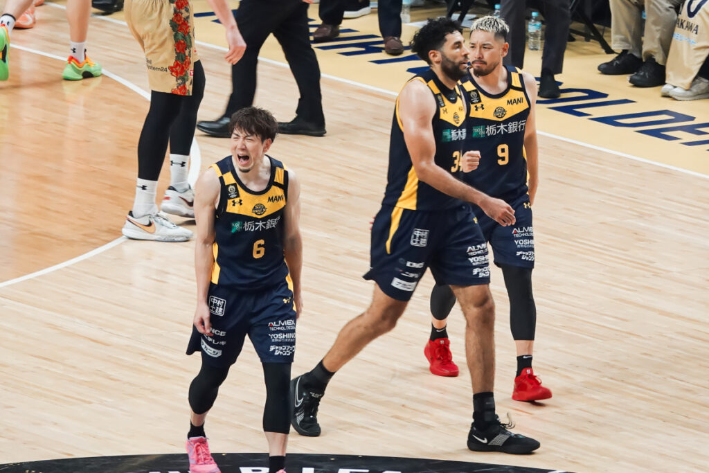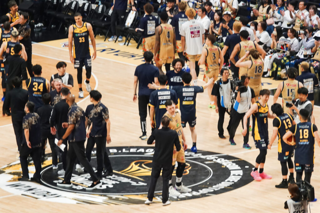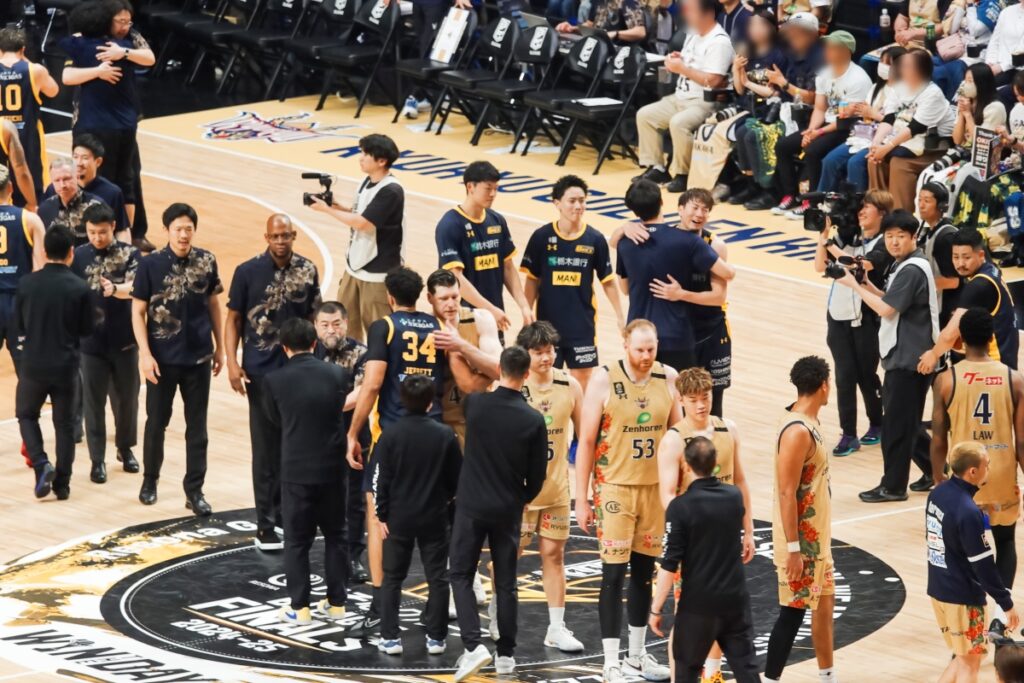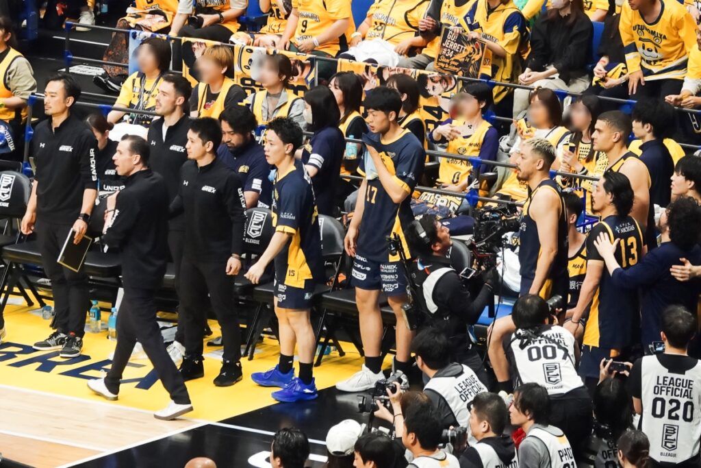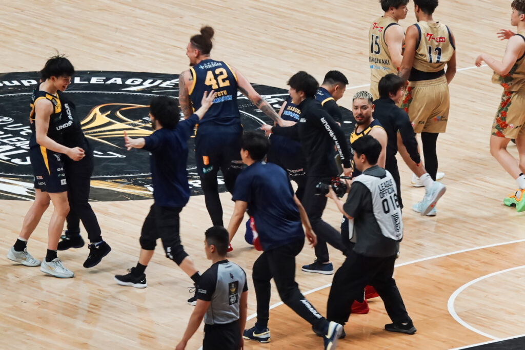 残り約1分ニュービルの3ポイントで逆転し、その後再逆転されるものの残り約30秒比江島の3ポイントが決勝点になりました。