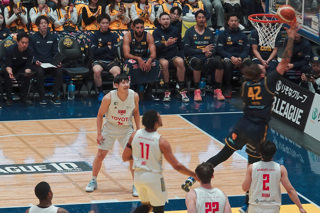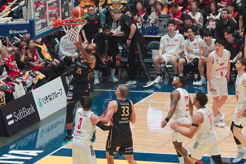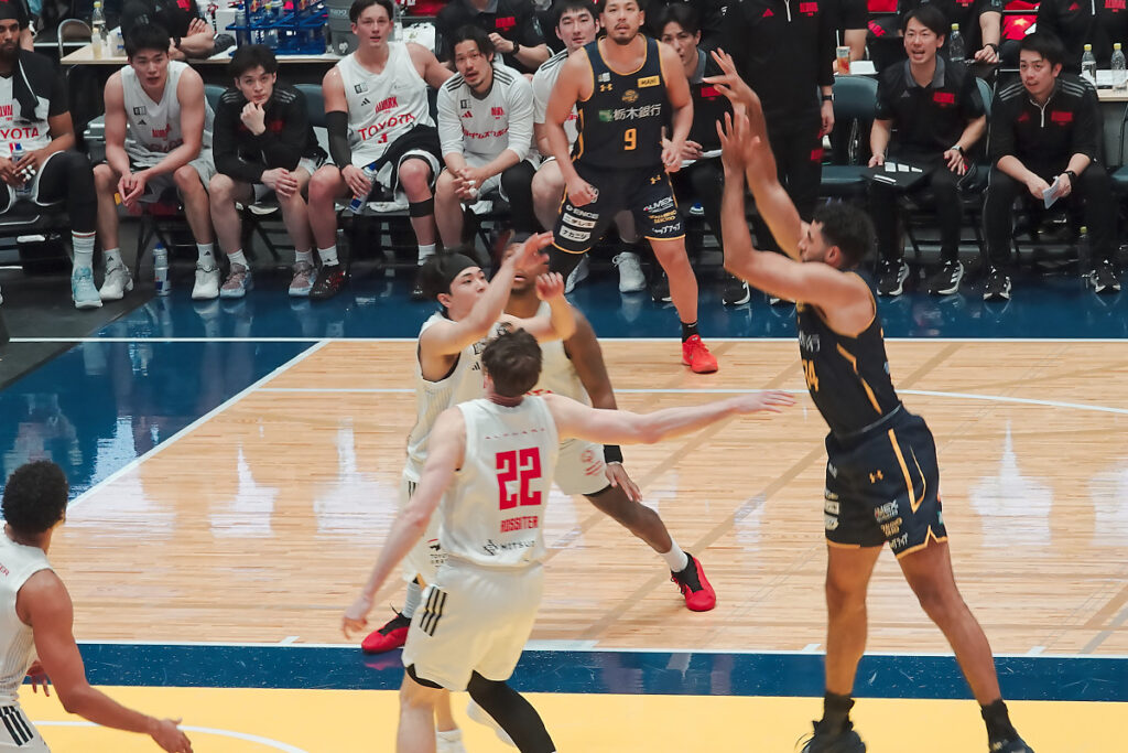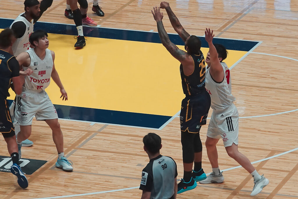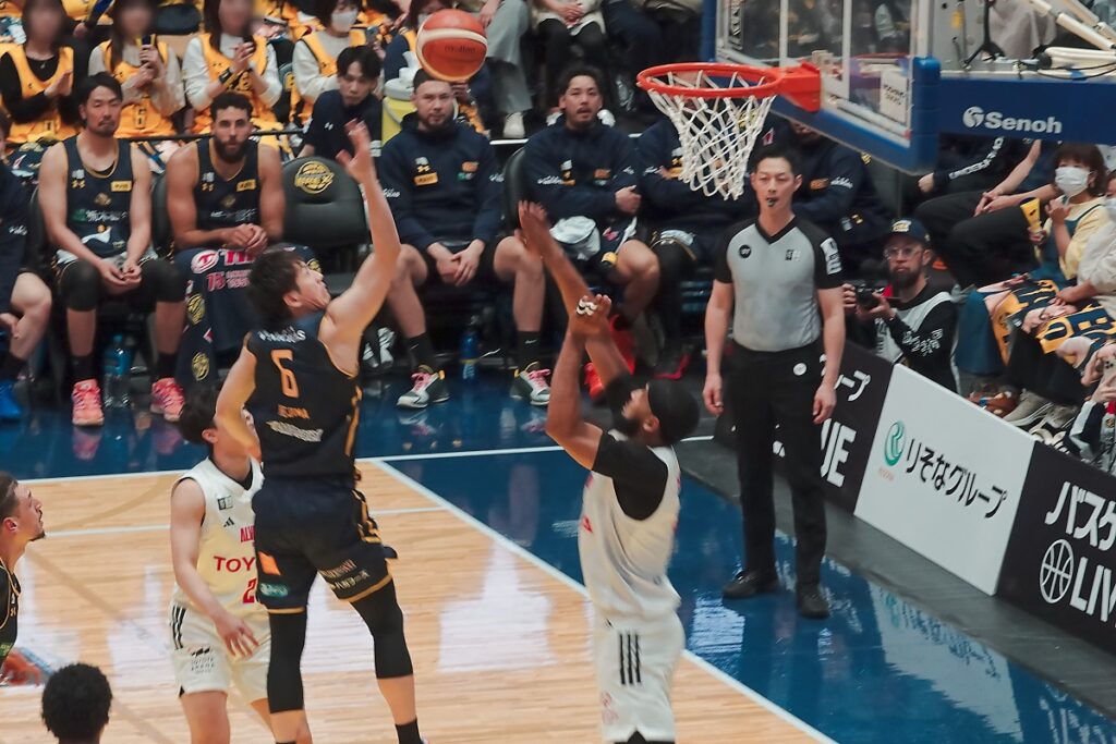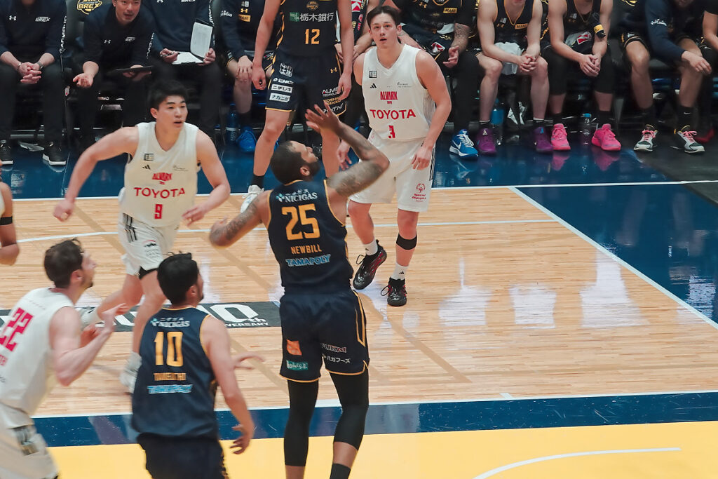 後半に失速する事がままありますが、ニュービル、比江島、ジェレット、ギャビン、フォトゥ以外でコンスタントに点が取れる選手がいないので、この日のように高島や小川の調子が悪いとプレイタイムが偏って(特にニュービル)足が動かなくなるのは仕方がないですよね。