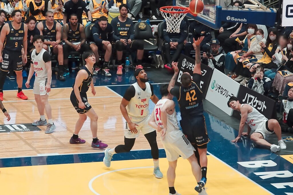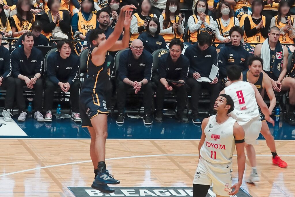 ブレックスの場合は、富山(2勝)、大阪(1勝)、群馬(1勝1敗)、渋谷(1勝)、名古屋D(1勝1敗)、琉球(1勝1敗)で何とか44勝を確保できると思うけど、富山、大阪、渋谷に一つでも負けたら赤信号です。