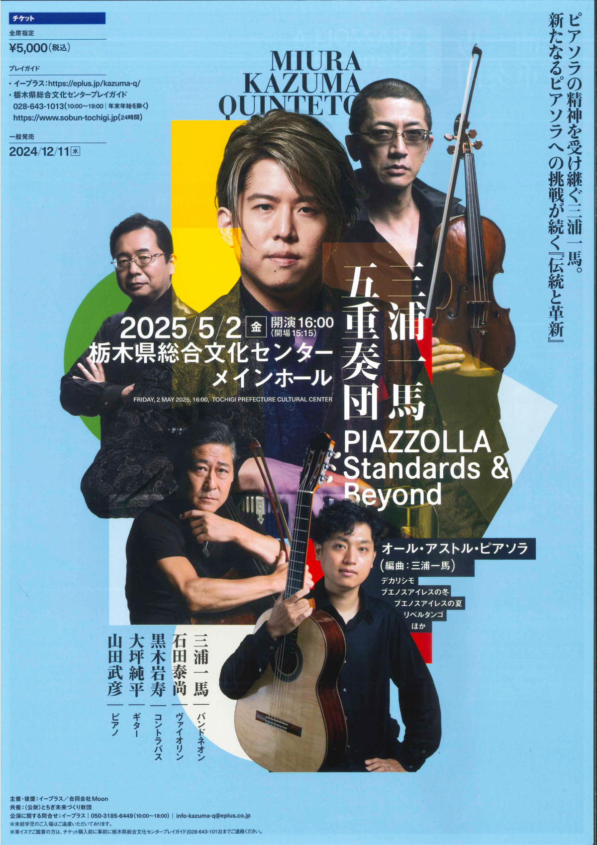 なんでもピアソラ本人も五重奏で演奏する機会が多く、今回も出来るだけオリジナルに近い演奏を心掛けたとか…